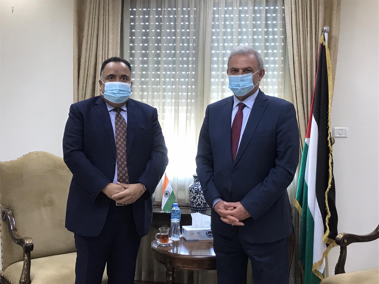 وشكر أبو عمرو ضيفه على ما تقدمه الحكومة الهندية من مساعدات للشعب الفلسطيني، وخاصة فيما يتعلق بالمساعدات الطبية التي تحتاجها الحكومة لمواجهة جائحة كورونا.