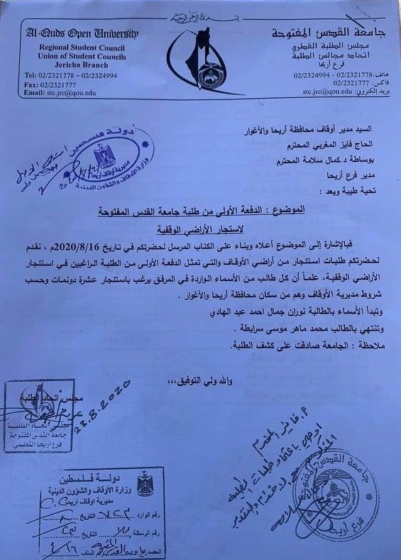 مدير جامعة القدس المفتوحة في أريحا كمال سلامة، يؤكد أنها مبادرة وطنية أعلن عنها قبل نحو شهر للتقدم والحصول على 10 دونمات لكل طالب، تحقيقا لرؤية الحكومة الفلسطينية في دعم فئة الشباب وتأهيلهم من أجل الحصول على فرص عمل.