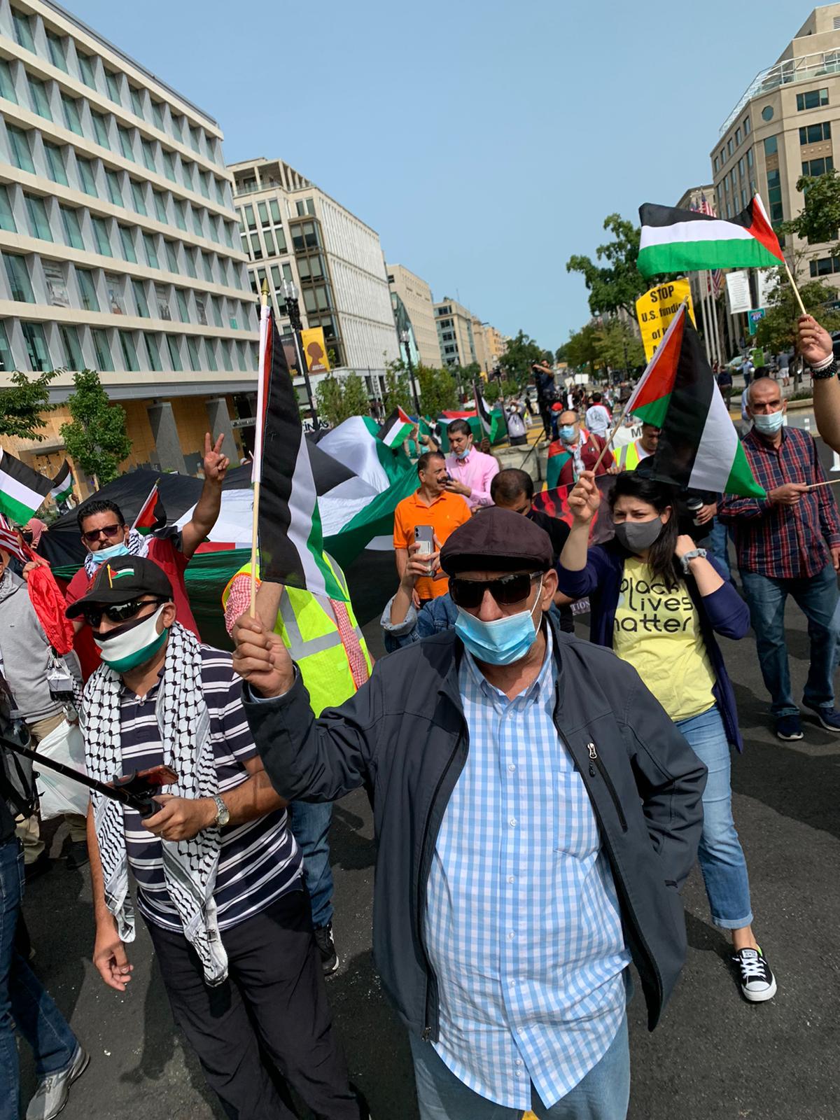 وحالت الإجراءات الصحية والتشديدات المفروضة نتيجة تفشي فيروس "كورونا" من مشاركة آلاف في هذه التظاهرة التي جابت شوارع العاصمة الأميركية، والتي حمل المشاركون الذين قدموا من معظم الولايات، وتحديداً من شيكاغو ونيوجيرسي ونيويورك وفرجينيا وميتشيغين علما فلسطينيا يتجاوز طوله 50 متراً، وأعلام عدد من الدول التي تقف إلى جانب الشعب الفلسطيني وتسانده على الدوام.