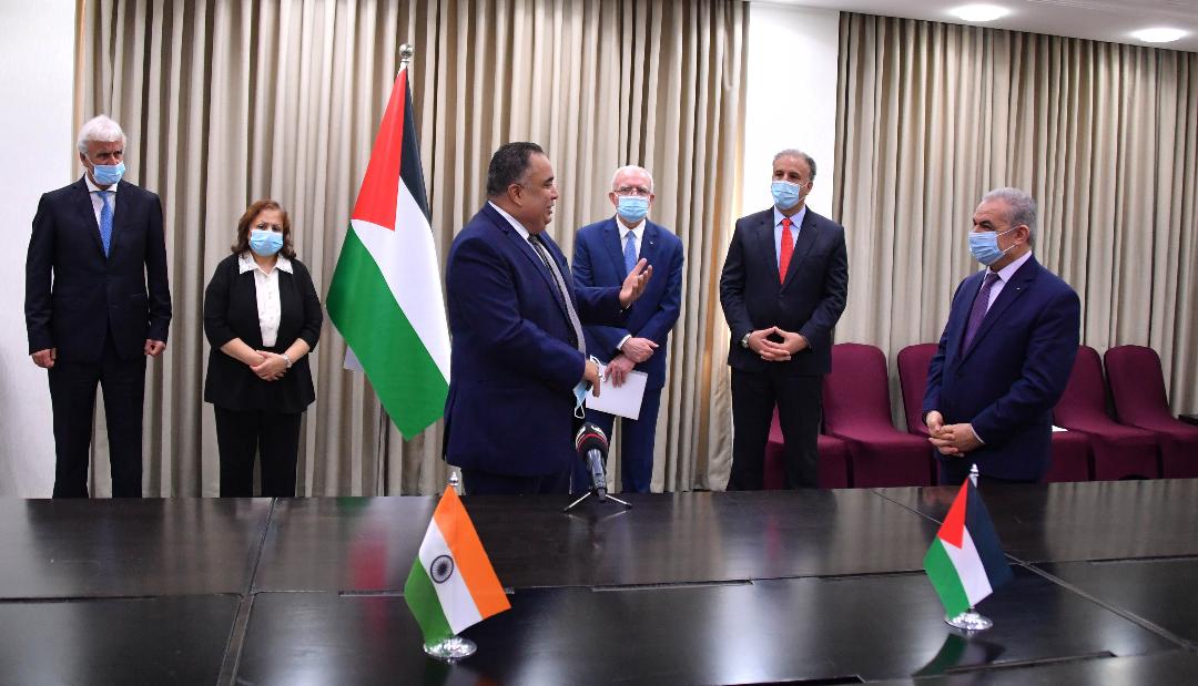 اشتية يرعى توقيع اتفاقيات تجديد منح من الهند لصالح التعليم والصحة والمطبعة الوطنية