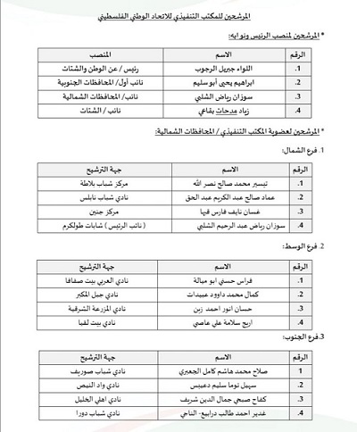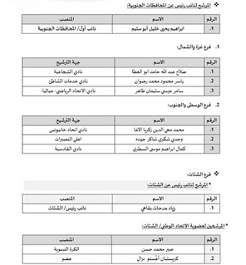 القائمة النهائية لأسماء مرشحي المكتب التنفيذي للاتحاد الوطني الفلسطيني لكرة القدم