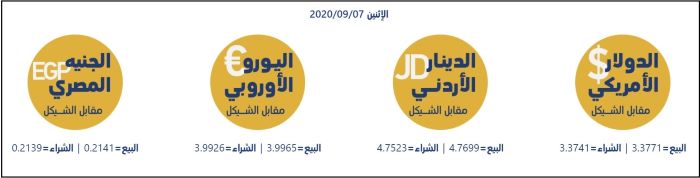رام الله 7-9-2020 وفا- جاءت أسعار العملات مقابل الشيقل الإسرائيلي، اليوم الإثنين، حسب سلطة النقد، على النحو التالي: