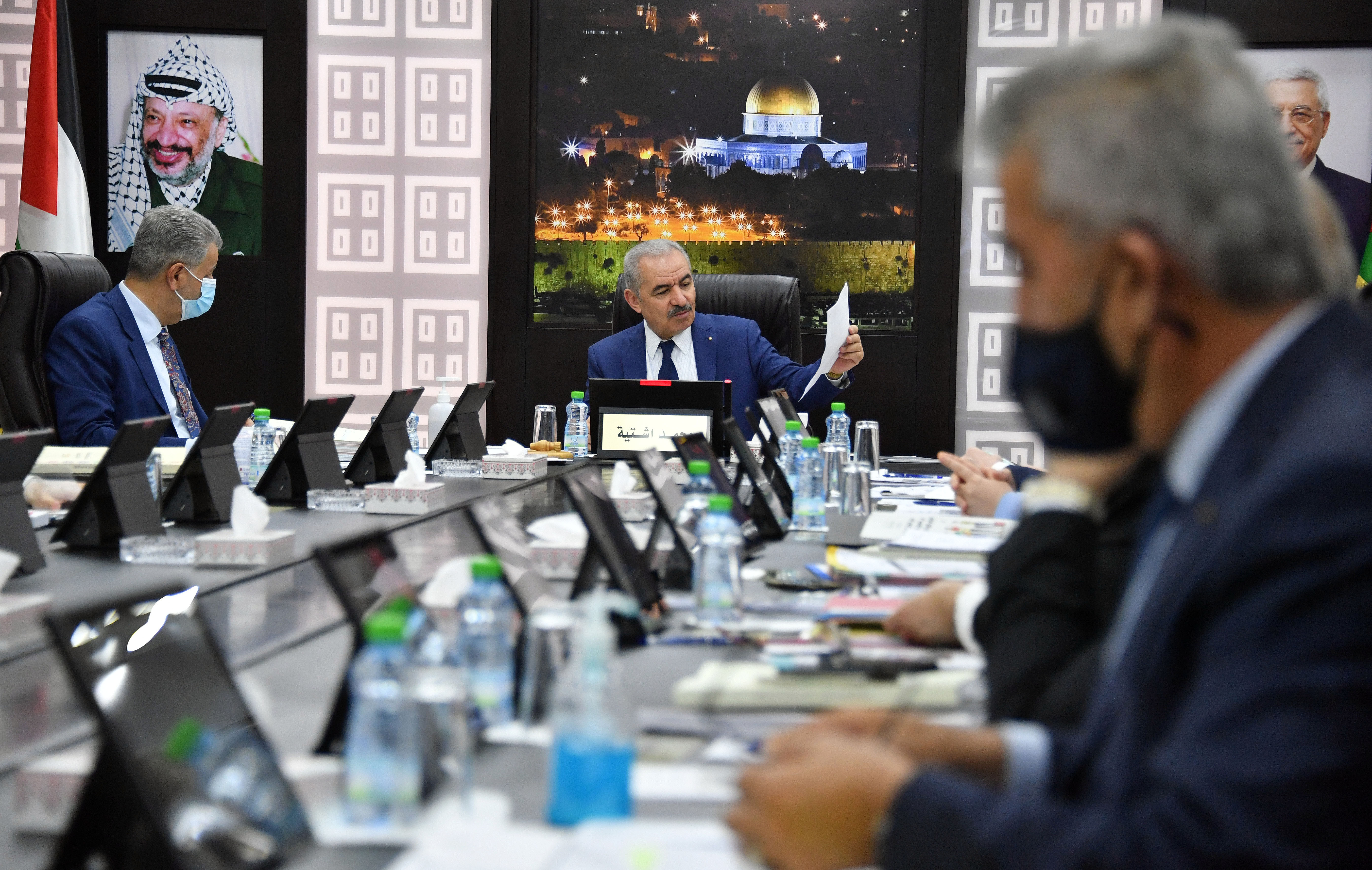 رام الله 7-9-2020 وفا- قال رئيس الوزراء محمد اشتية في مستهل الجلسة الأسبوعية لمجلس الوزراء التي عقدت اليوم الإثنين في مدينة رام الله، "إن صفقة القرن ومخططات الضم الإسرائيلية أصبحت خلف ظهورنا بسبب الموقف الفلسطيني الصلب بقيادة السيد الرئيس محمود عباس وثبات شعبنا والدعم الدولي والعربي".