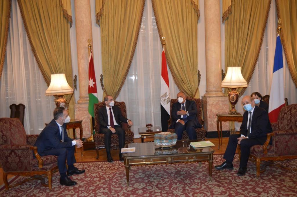 القاهرة 11-1-2021 وفا بحث وزير الخارجية المصري سامح شكري، اليوم الاثنين، بوزارة الخارجية "قصر التحرير" مع نائب رئيس الوزراء وزير خارجية الأردن، ووزيري خارجية فرنسا وألمانيا، إحياء عملية السلام في المنطقة.