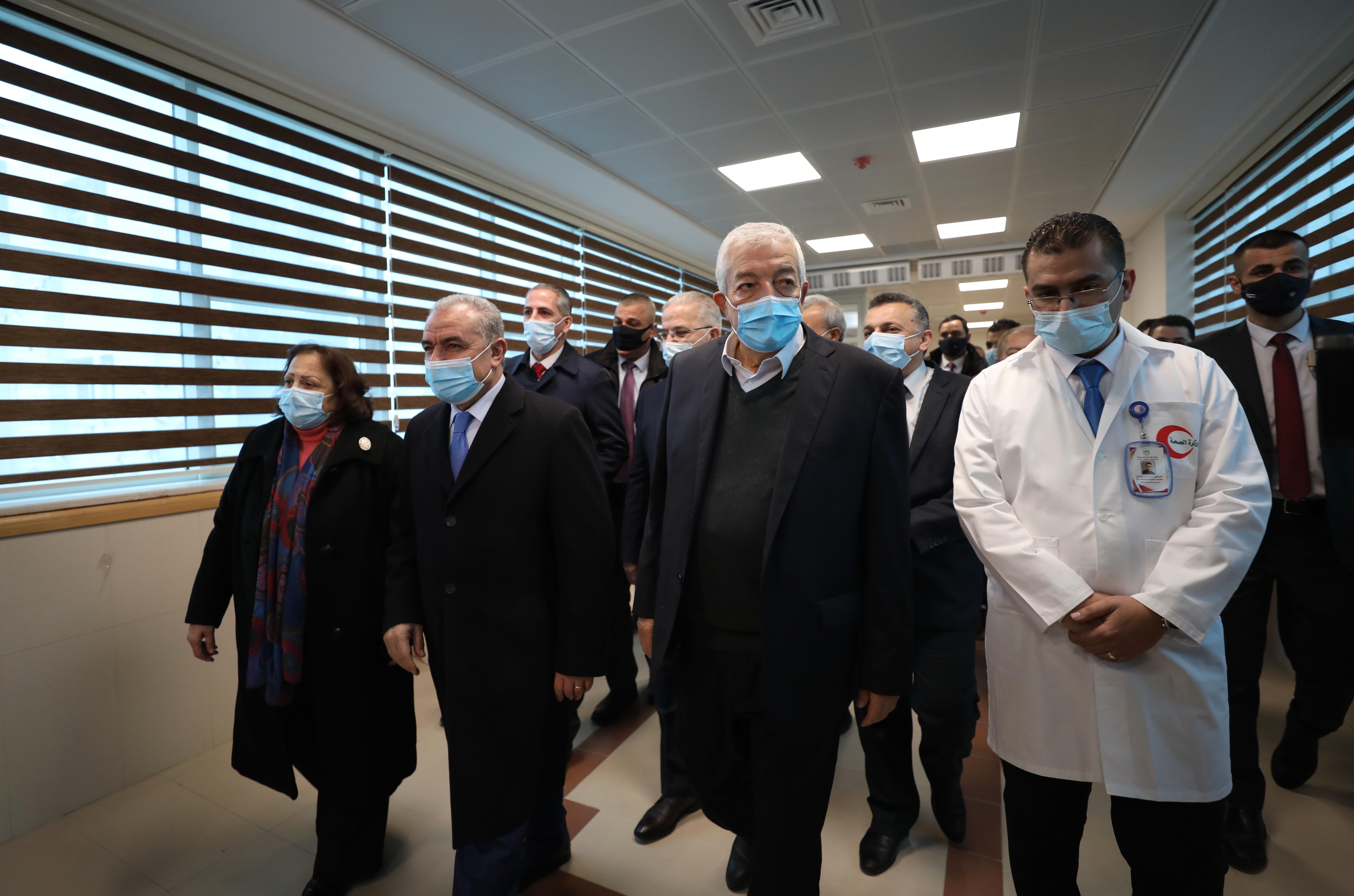 نابلس 16-1-2021 وفا- افتتح رئيس الوزراء محمد اشتية، اليوم السبت، مستشفى الهلال الأحمر الفلسطيني في مدينة نابلس، المخصص لعلاج مرضى كورونا في المحافظات الشمالية.