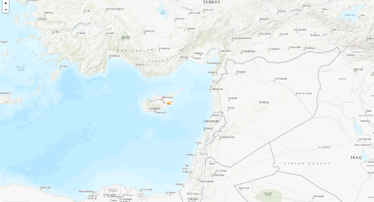 قبرص 21-1-2021 وفا- ضربت هزة أرضية، مساء اليوم الخميس، بقوة 4.9 درجة على مقياس ريختر شمال جزيرة قبرص، وشعر بها سكان فلسطين وسورية ولبنان وتركيا.