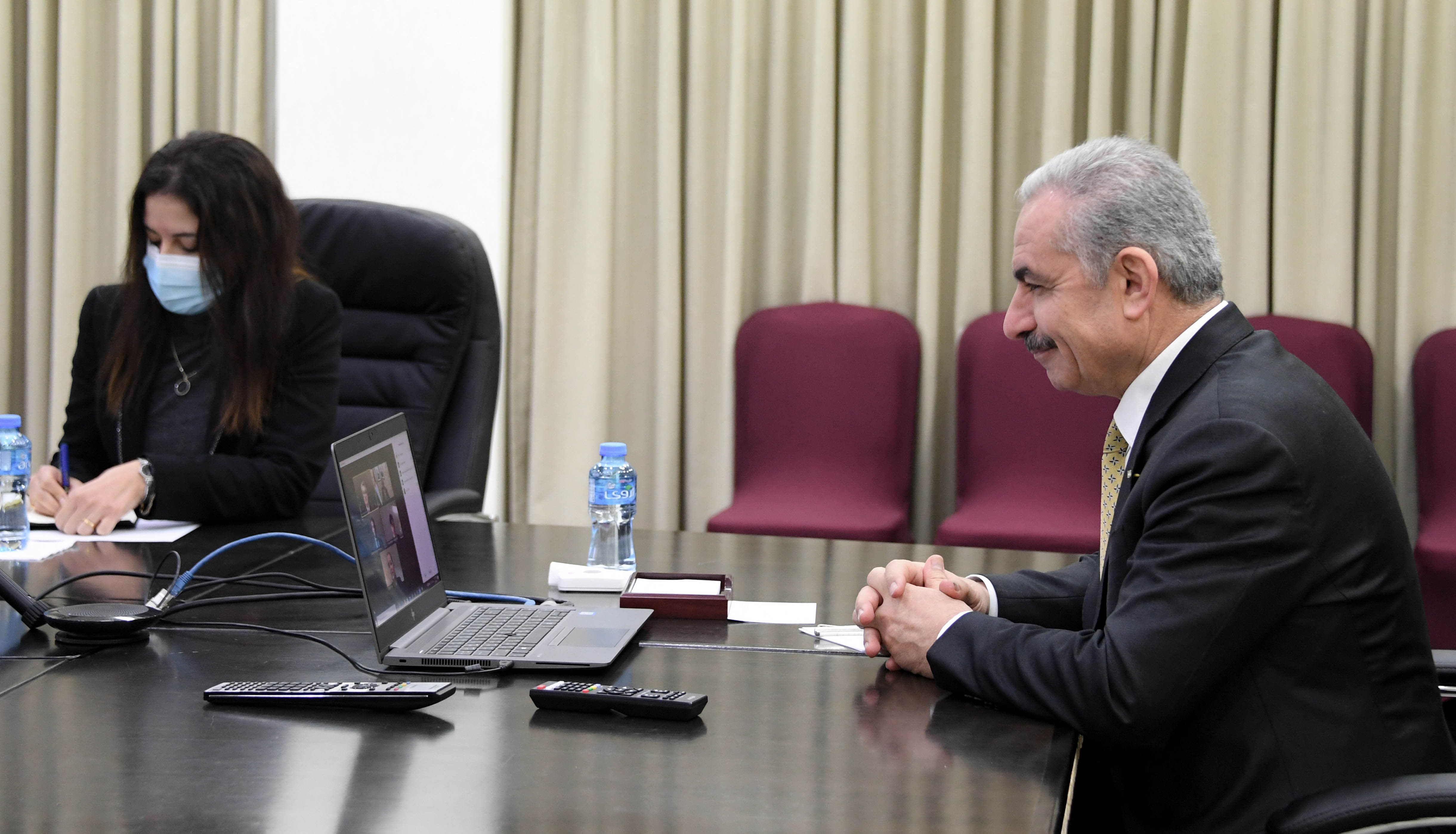رام الله 31-1-2021 وفا- بحث رئيس الوزراء محمد اشتية، اليوم الأحد، عبر الفيديو، مع المبعوث النرويجي الجديد الخاص لعملية السلام في الشرق الأوسط جون هانسين باور، آخر التطورات السياسية ومستجدات الأوضاع والانتخابات العامة في فلسطين.