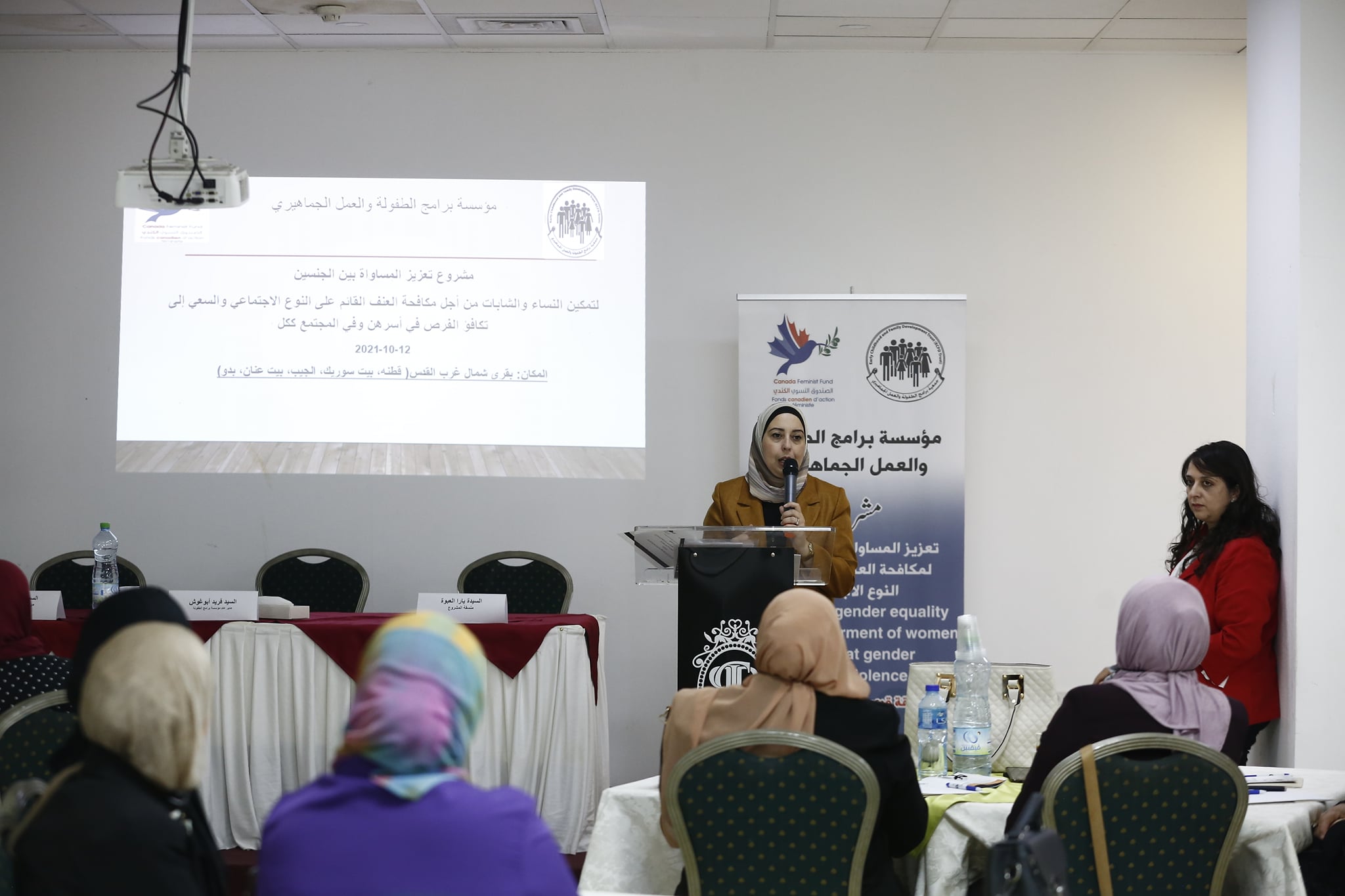 رام الله 12-10-2021 وفا- طالب مشاركون في ندوة نظمت في رام الله، اليوم الثلاثاء، بمعالجة قضايا العنف المبني على النوع الاجتماعي في قرى شمال غرب القدس.