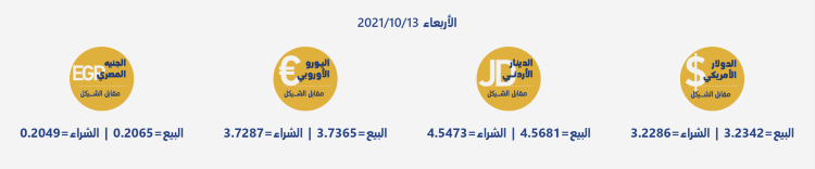 رام الله 13-10-2021 وفا- جاءت أسعار العملات مقابل الشيقل الإسرائيلي، اليوم الأربعاء، حسب سلطة النقد، على النحو التالي: