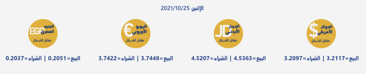 رام الله 25-10-2021 وفا- جاءت أسعار العملات مقابل الشيقل الإسرائيلي، اليوم الإثنين، حسب سلطة النقد، على النحو التالي: