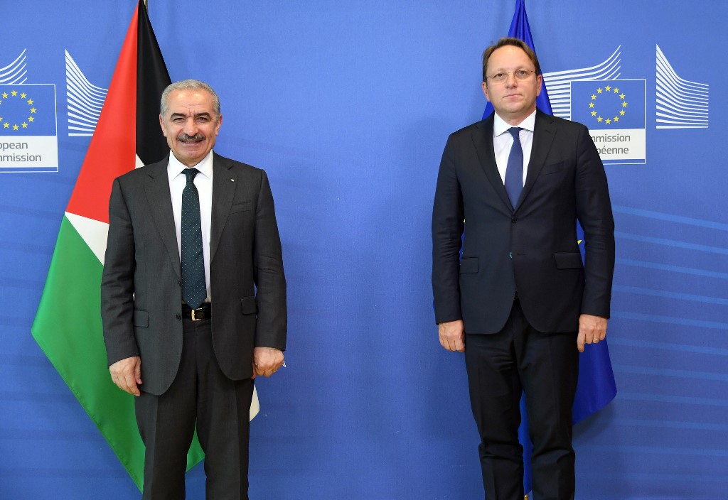 وبحث اشتية مع فارهيلي سبل تعزيز دعم الاتحاد الأوروبي المالي لفلسطين، وتجاوز المعيقات الفنية وغيرها، خاصة في ظل تراجع الدعم الخارجي الدولي خلال الأعوام الماضية.