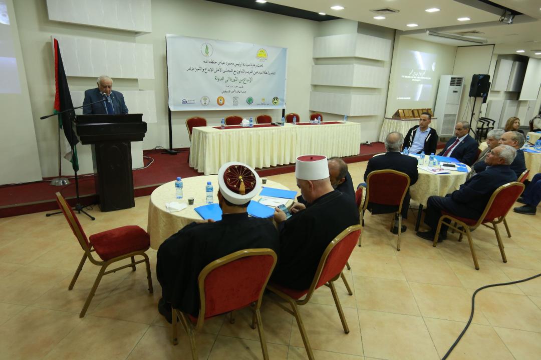 وفي كلمة نيابة عن الرئيس محمود عباس، القاها رئيس المجلس الأعلى للإبداع والتميز عدنان سمارة، قال: إن اختياركم لهذا العنوان في مؤتمركم اختيار موفق لأنه يتطرق الى تاريخ ثورتنا المجيدة، فمنذ اليوم الأول لم تكن البندقية قاطعة طريق بل كانت بندقية مسيسة، وثورتنا كانت ريشة فنان وقلم كاتب وسماعة طبيب وفرجار ومنقلة مهندس ولسان شاعر وكتاب معلم، فعين الأخوة كانت إقامة مؤسسات الدولة بعد الاستقلال الذي لا بد أنه قادم لا محالة.