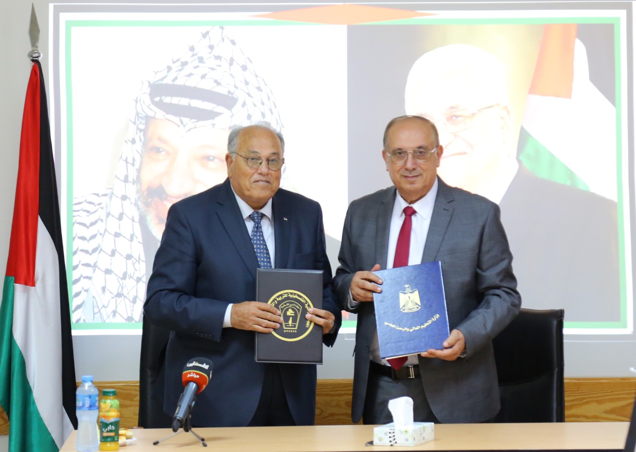 رام الله 6-10-2021 وفا- وقع وزير التعليم العالي والبحث العلمي محمود أبو مويس، ورئيس اللجنة الوطنية الفلسطينية للتربية والثقافة والعلوم علي أبو زهري، في مقر الوزارة، اليوم الأربعاء، اتفاقية لتنفيذ مشروع "بناء قدرات المحاضرين في الكليات التقنية بمجال ريادة الأعمال"، بحضور حشد من أسرتي "التعليم العالي" واللجنة الوطنية.