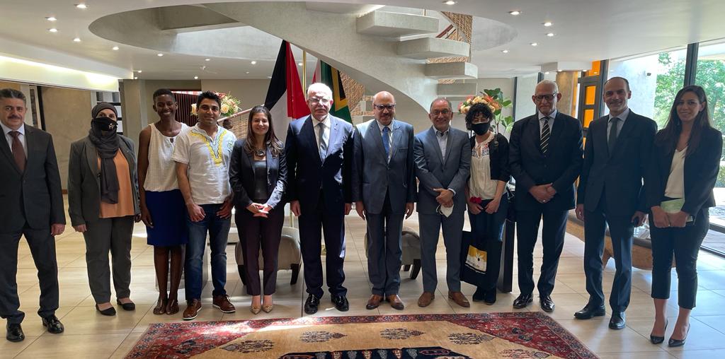 بريتوريا 9-10-2021 وفا- التقى وزير الخارجية والمغتربين رياض المالكي، اليوم السبت، رؤساء لجان التضامن مع شعبنا الفلسطيني، في جنوب إفريقيا.
