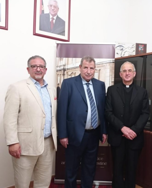 وتناول النقاش الذي جرى في مقر سفارتنا لدى حاضرة الفاتيكان، بحضور السفير عيسی قسیسیة، حول تفعيل مذكرة التفاهم بين المجلس البابوي ولجنة الحوار الفلسطينية.