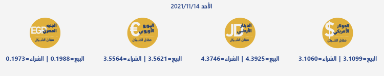 رام الله 14-11-2021 وفا- جاءت أسعار العملات مقابل الشيقل الإسرائيلي، اليوم الأحد، حسب سلطة النقد، على النحو التالي: