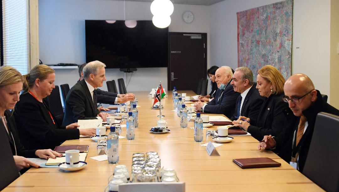 أوسلو 17-11-2021 وفا- بحث رئيس الوزراء محمد اشتية مع نظيره النرويجي يوناس غار ستوره، في مكتب الأخير في أوسلو، اليوم الأربعاء، تعزيز العلاقات الثنائية وضرورة فتح آفاق العملية السياسية.