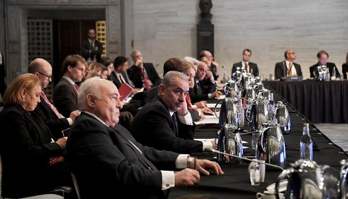 اشتية خلال اجتماع المانحين