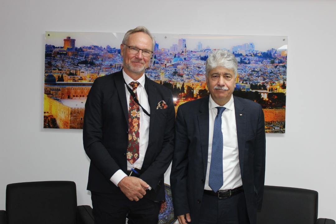 رام الله 2-11-2021 وفا- بحث وزير التنمية الاجتماعية أحمد مجدلاني، مع قنصل مملكة السويد المعتمد لدى دولة فلسطين جوليوس ليلياستروم، سبل التعاون المشترك بما يخدم برامج وزارة التنمية وفق الرؤية الجديدة بالتحول من الاغاثة إلى الانتاج مع التركيز على برامج التمكين الاقتصادي.