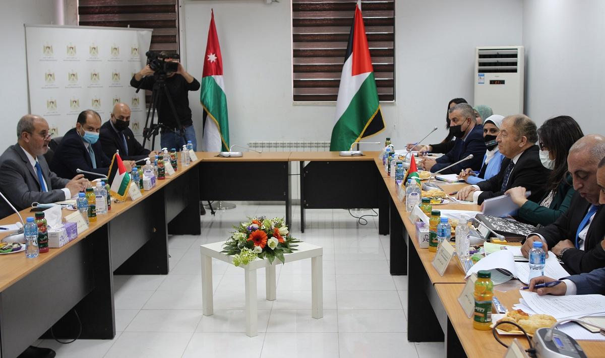 واستعرض الجانبان خلال اللقاء المشترك الذي عقد بمقر وزارة الاقتصاد بمدينة رام الله بحضور السفير الأردني لدى دولة فلسطين محمد أبو وندي وبمشاركة وزارة الخارجية الفلسطينية والمؤسسات الفلسطينية الشريكة، السبل الكفيلة لزيادة حجم التبادل التجاري، وتحقيق رؤية القيادتين الفلسطينية والأردنية في زيادة حجم التبادل التجاري بين البلدين وإقامة استثمارات مشتركة.