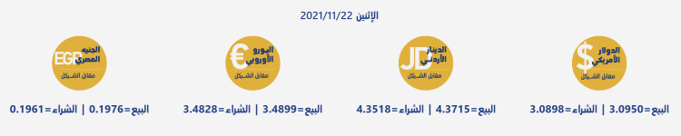 رام الله 22-11-2021 وفا- جاءت أسعار العملات مقابل الشيقل الإسرائيلي، اليوم الإثنين، حسب سلطة النقد، على النحو التالي: