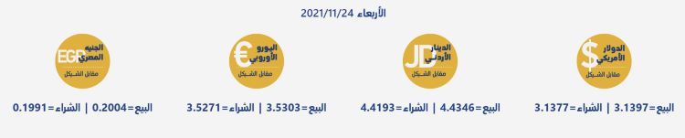 رام الله 24-11-2021 وفا- جاءت أسعار العملات مقابل الشيقل الإسرائيلي، اليوم الأربعاء، حسب سلطة النقد، على النحو التالي: