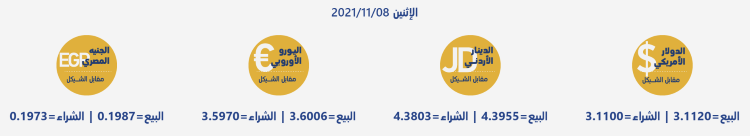 رام الله 8-11-2021 وفا- جاءت أسعار العملات مقابل الشيقل الإسرائيلي، اليوم الإثنين، حسب سلطة النقد، على النحو التالي: