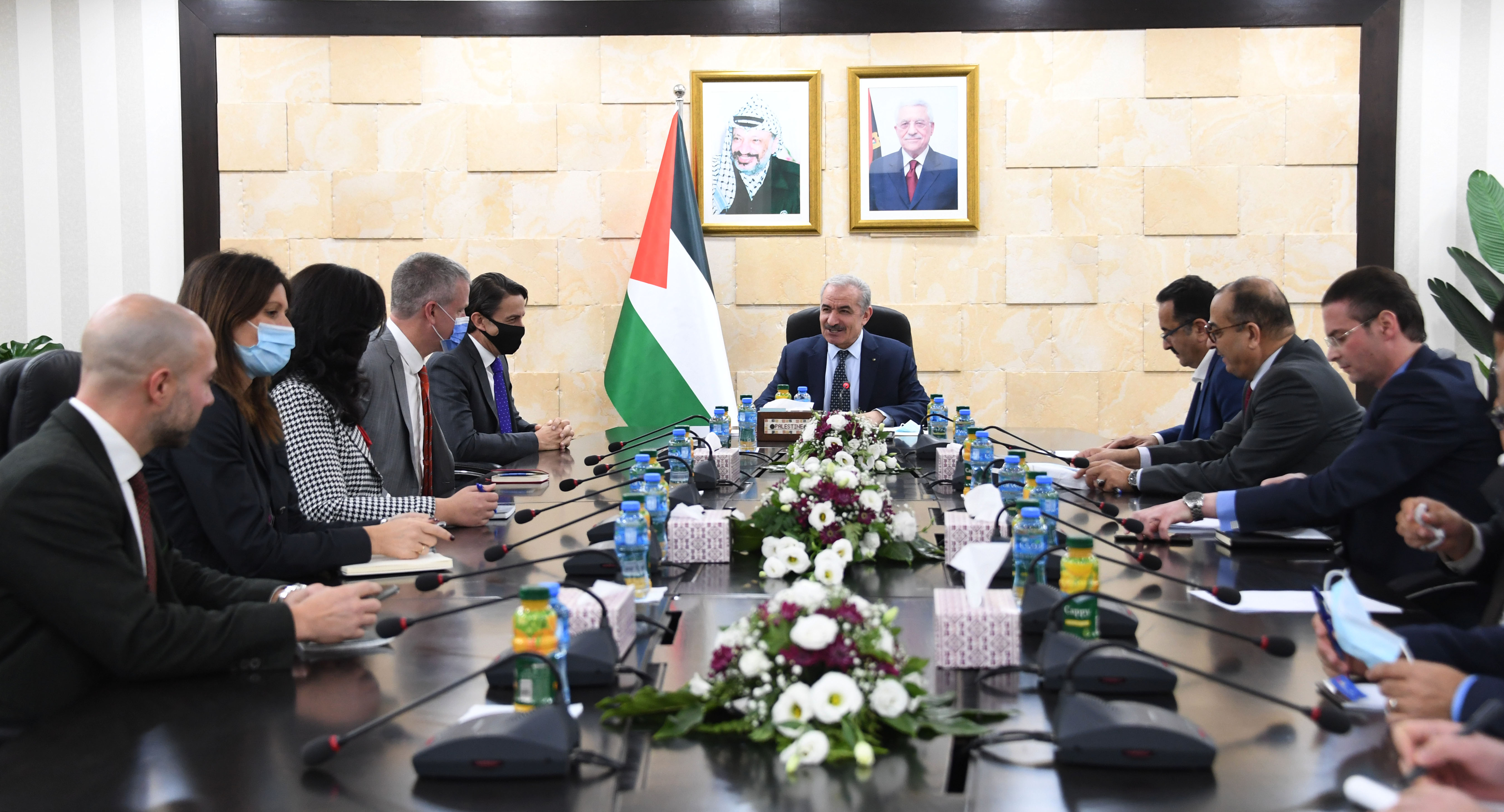 رام الله 8-11-2021 وفا- بحث رئيس الوزراء محمد اشتية، اليوم الإثنين، في مكتبه برام الله، مع كبير مستشاري الولايات المتحدة لشؤون الطاقة عاموس هوشستين، واقع الطاقة في فلسطين وتعزيز سبل النهوض بهذا القطاع.