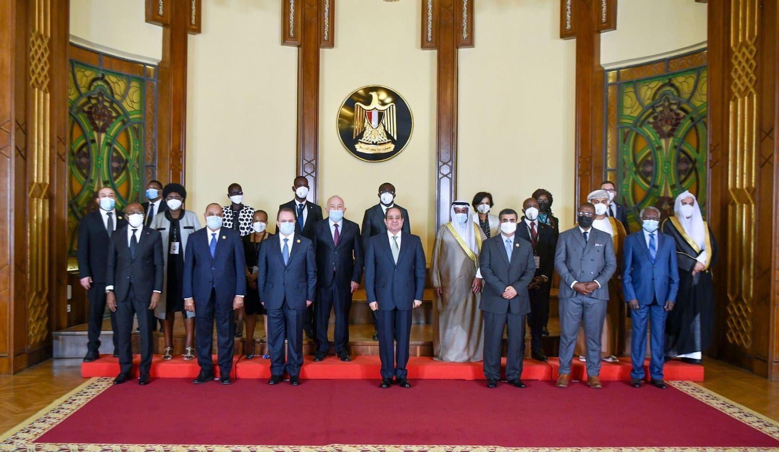 القاهرة 8-11-2021 وفا- استقبل الرئيس المصري عبد الفتاح السيسي، اليوم الاثنين، النواب العموم العرب والأفارقة المشاركين في المؤتمر الدولي الذي تنظمه النيابة العامة المصرية بشأن "دور أجهزة النيابات العامة في مكافحة الجرائم عبر الوطنية"، بحضور النائب العام المستشار أكرم الخطيب.