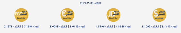 رام الله 9-11-2021 وفا- جاءت أسعار العملات مقابل الشيقل الإسرائيلي، اليوم الثلاثاء، حسب سلطة النقد، على النحو التالي: