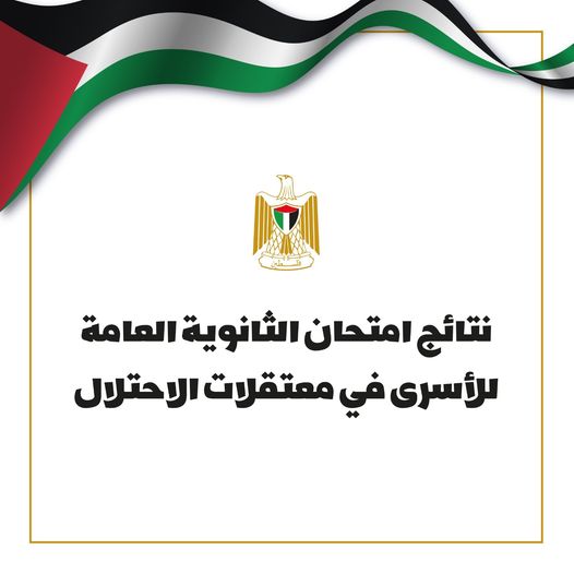 رام الله 9-11-2021 وفا- أعلنت وزارة التربية والتعليم، اليوم الثلاثاء، نتائج امتحان الثانوية العامة للأسرى في معتقلات الاحتلال الإسرائيلي للعام 2021.