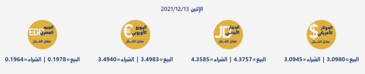 رام الله 13-12-2021 وفا- جاءت أسعار العملات مقابل الشيقل الإسرائيلي، اليوم الإثنين، حسب سلطة النقد، على النحو التالي: