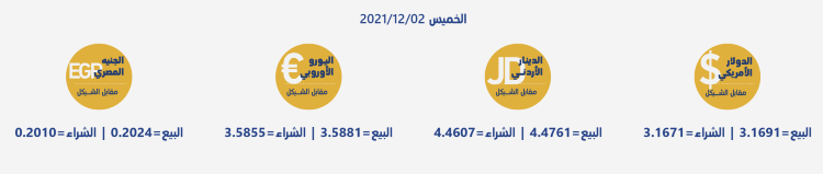 رام الله 2-12-2021 وفا- جاءت أسعار العملات مقابل الشيقل الإسرائيلي، اليوم الخميس، حسب سلطة النقد، على النحو التالي: