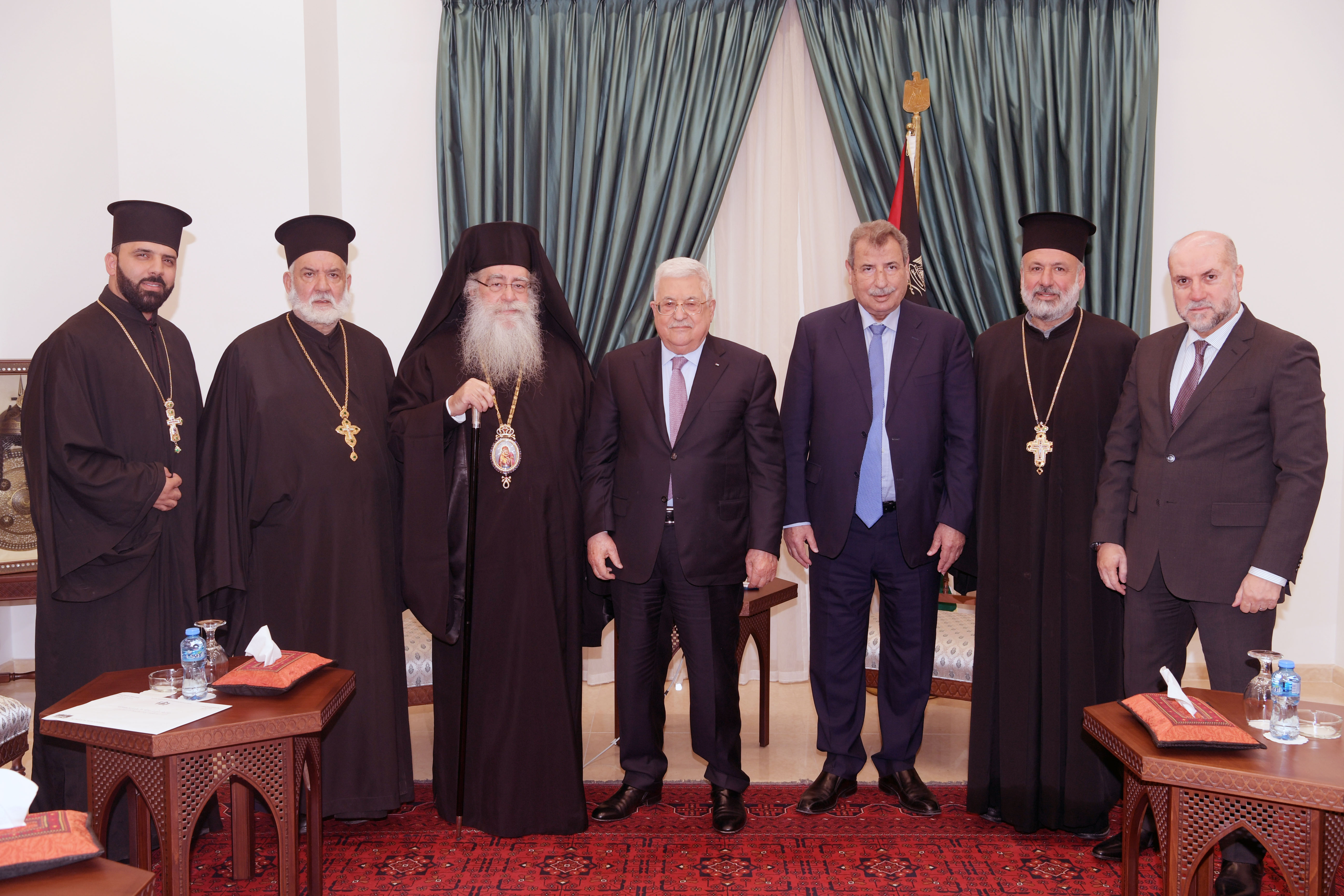 جاء ذلك خلال استقبال سيادته، ظهر اليوم الثلاثاء، بمقر الرئاسة، المتروبوليت فنيذكتوس الوكيل البطريركي في بيت لحم، والايكونومس سبيريدون سمور، والايكونومس عيسى مصلح، والايكونومس عيسى ثلجية، بحضور رئيس اللجنة العليا لشؤون الكنائس د.رمزي خوري، وقاضي قضاة فلسطين، مستشار الرئيس للشؤون الدينية والعلاقات الإسلامية محمود الهباش.