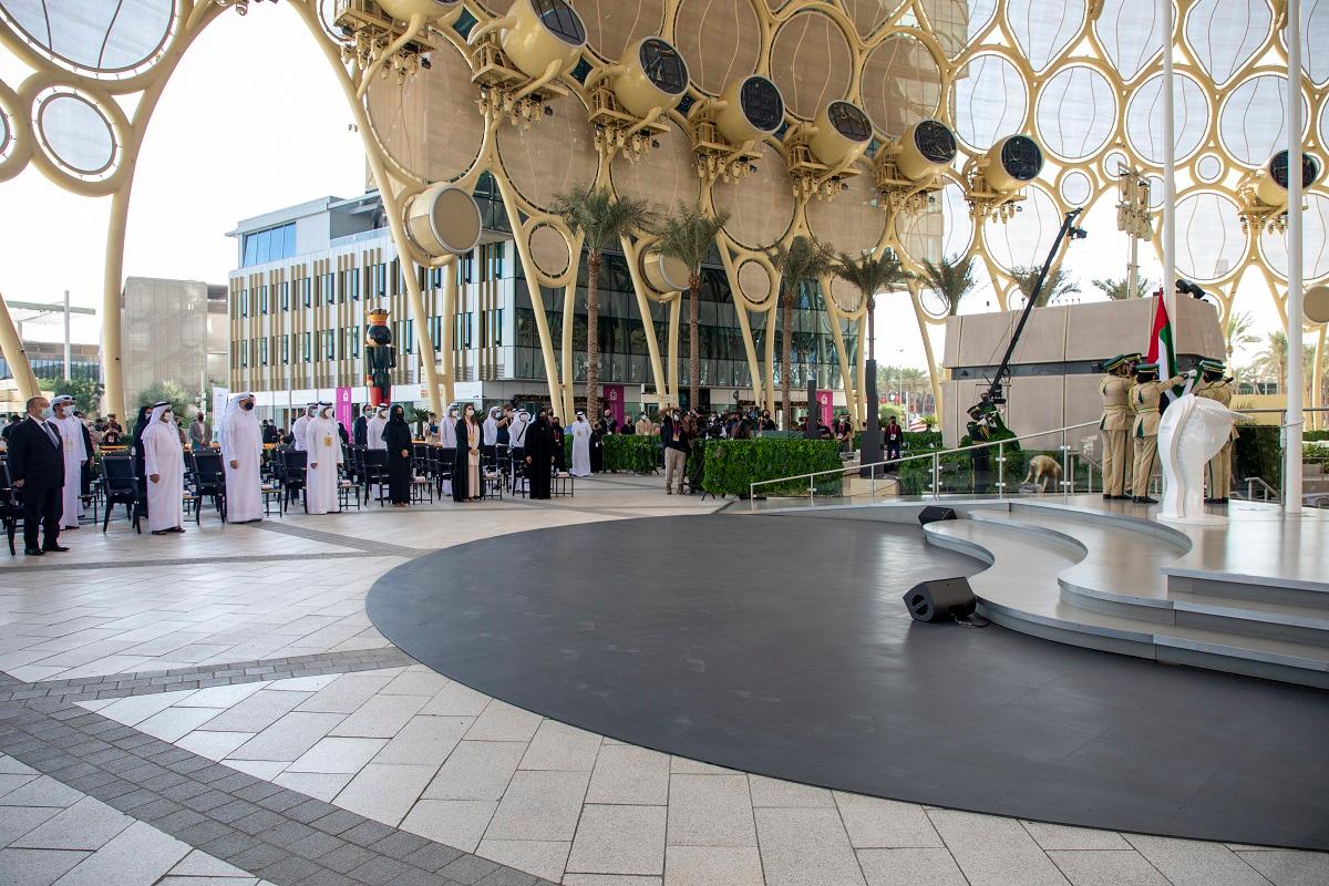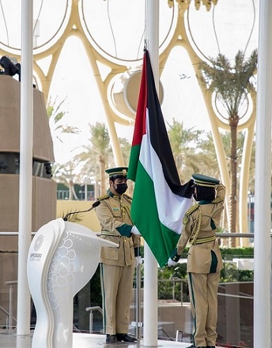 وتخلل الحفل الذي جرى بحضور ممثلين دوليين، رفع علم دولة الإمارات العربية المتحدة المستضيفة لإكسبو 2020 الدولي، وعلم دولة فلسطين، ومن ثم عزف النشيد الوطني لكلا البلدين، إضافة إلى جولة في جناحي فلسطين والإمارات.