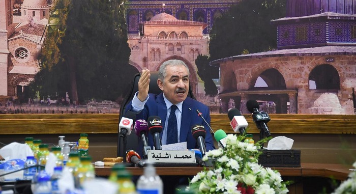 اشتية خلال ترؤسه جلسة مجلس الوزراء التي عقدت في طولكرم