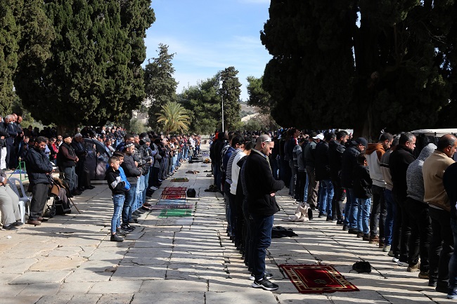 القدس 3-12-2021 وفا- أدى نحو 50 ألف مصلٍ، صلاة الجمعة في رحاب المسجد الأقصى المبارك.
