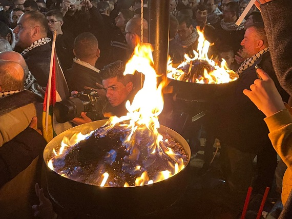 أوقد أبناء شعبنا في محافظة بيت لحم، مساء اليوم الجمعة، شعلة الانطلاقة الـ57 للثورة الفلسطينية وحركة "فتح"، في ساحة المهد.