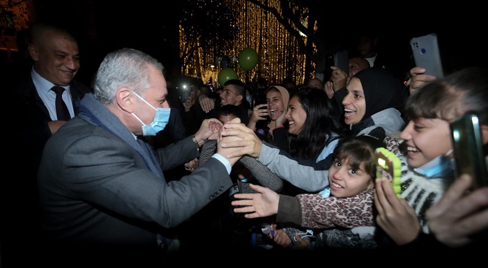 بيت لحم 4-12-2021 وفا- احتفلت مدينة بيت لحم، مساء اليوم السبت، بإضاءة شجرة عيد الميلاد المجيد، في ساحة كنيسة المهد، بحضور رئيس الوزراء محمد اشتية ممثلا عن الرئيس محمود عباس.