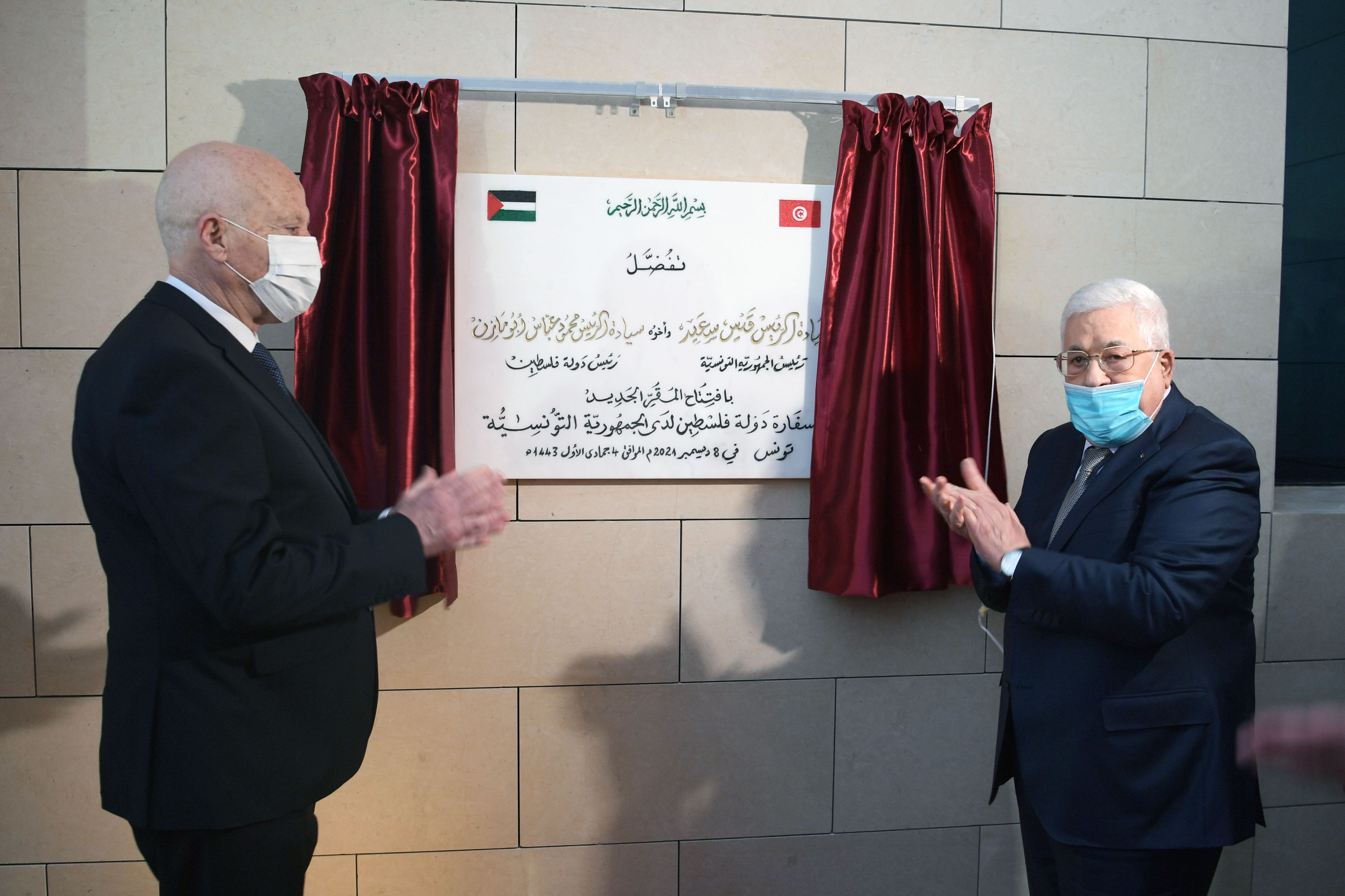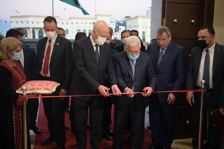 تونس 8-12-2021 وفا- افتتح رئيس دولة فلسطين محمود عباس، ورئيس الجمهورية التونسية قيس سعيد، اليوم الأربعاء، مبنى سفارة فلسطين الجديد لدى تونس.