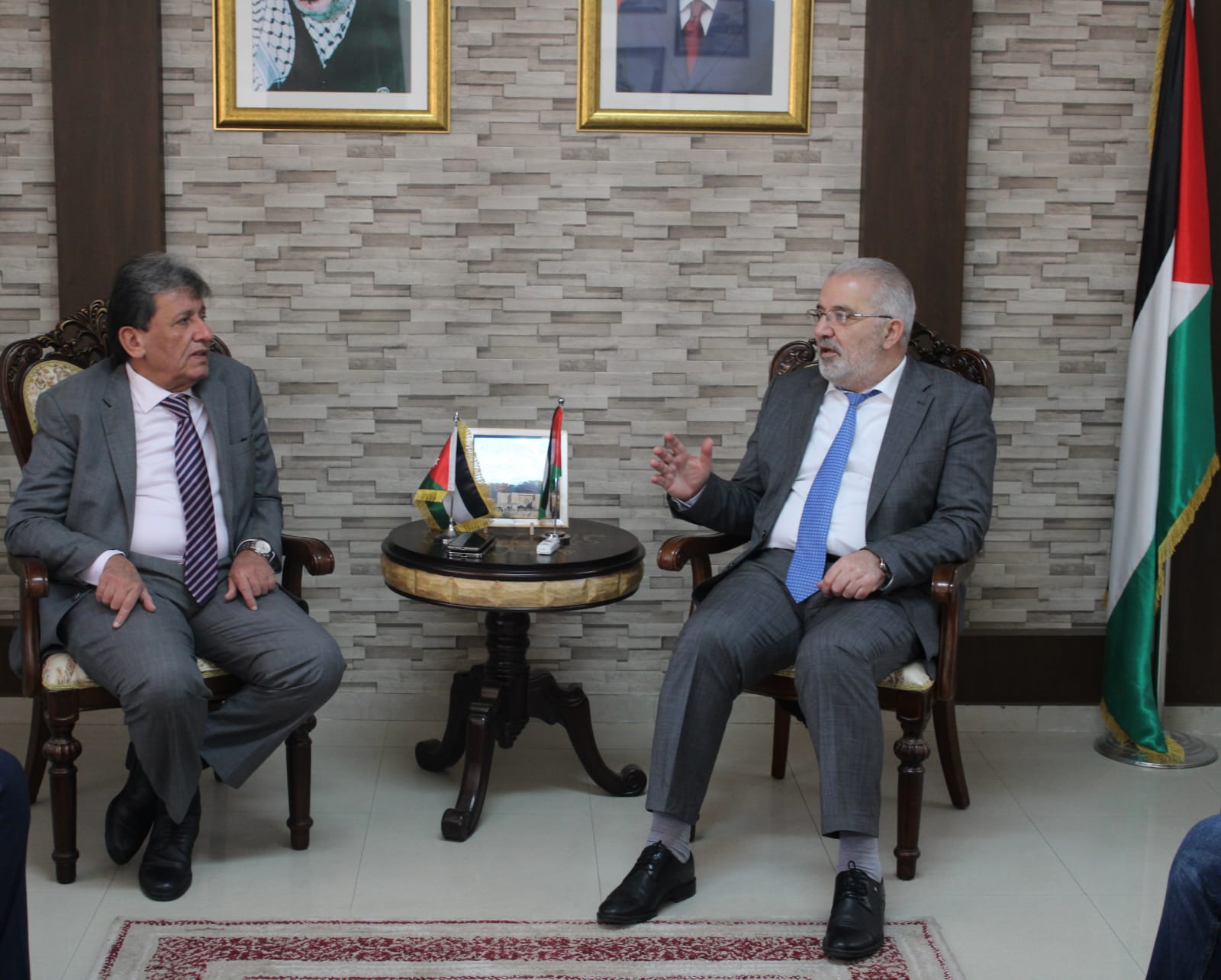 رام الله 8-12-2021 وفا- بحث وزير النقل والمواصلات عاصم سالم، مع نظيره الأردني وجيه عزايزة والوفد المرافق له، تعزيز التعاون.