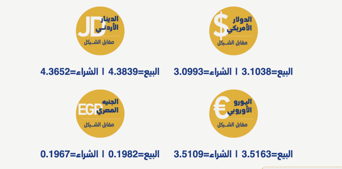 رام الله 9-12-2021 وفا- جاءت أسعار العملات مقابل الشيقل الإسرائيلي، اليوم الخميس، حسب سلطة النقد على النحو التالي: