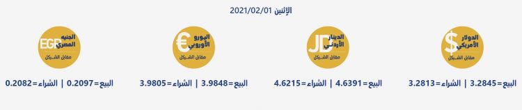 رام الله 1-2-2021 وفا- جاءت أسعار العملات مقابل الشيقل الإسرائيلي، اليوم الإثنين، حسب سلطة النقد، على النحو التالي: