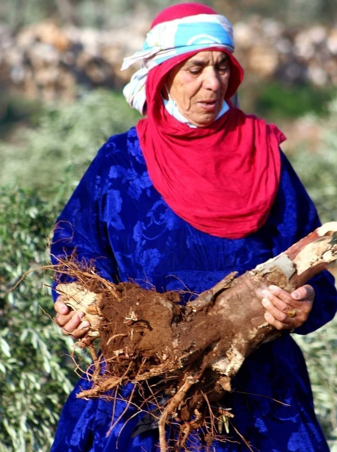 لم تحتمل صفية مشهد أكثر من ألف شجرة زرعتها وابناءها بعرقهم ودمهم، فحملت جذعا واحدة من تلك الشجرات وسارت عدة خطوات متثاقلة، وكأنها تحمل ابنا لها وتضمه الى أقرب مكان من القلب.