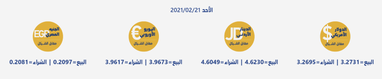 رام الله 21-2-2021 وفا- جاءت أسعار العملات مقابل الشيقل الإسرائيلي، اليوم الأحد، حسب سلطة النقد، على النحو التالي: