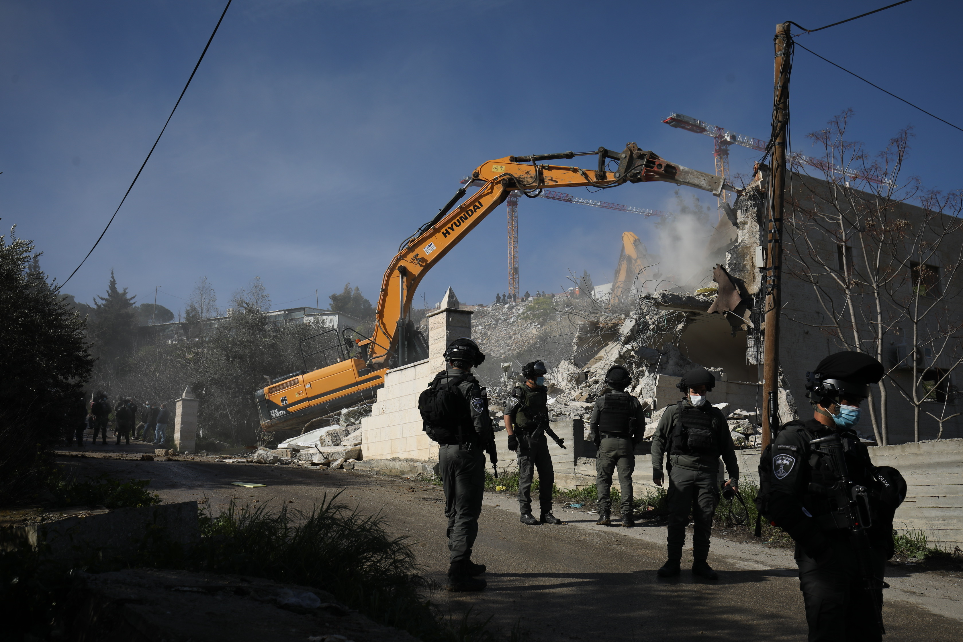 على الساعة الثامنة صباحا، حاصرت قوات الاحتلال المؤللة بالجرافات والجيبات العسكرية البناية السكنية قبل أن تبدأ بهدمها وتسوي أنقاضها بالأرض.