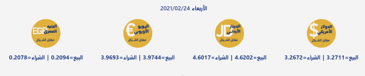 رام الله 24-2-2021 وفا- جاءت أسعار العملات مقابل الشيقل الإسرائيلي، اليوم الأربعاء، حسب سلطة النقد، على النحو التالي: