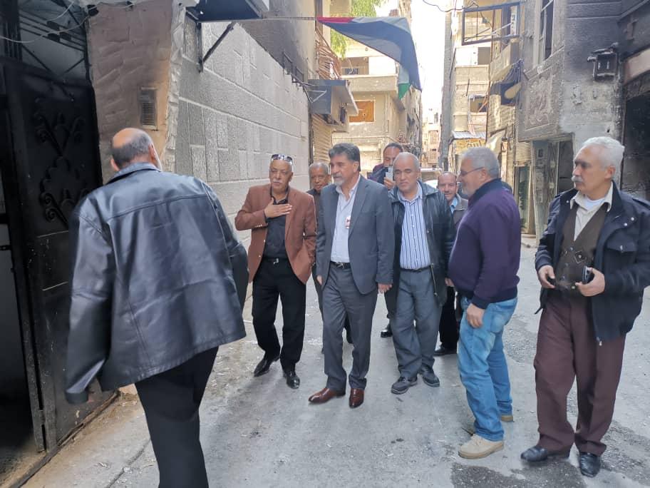 دمشق 27-2-2021 وفا- تفقد مدير عام الدائرة السياسية لمنظمة التحرير الفلسطينية السفير أنور عبد الهادي، اليوم السبت، مخيم اليرموك للاجئين في سوريا، واطلع على احتياجات الأهالي هناك.
