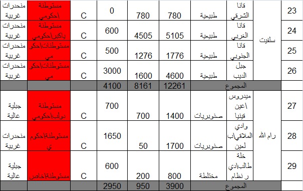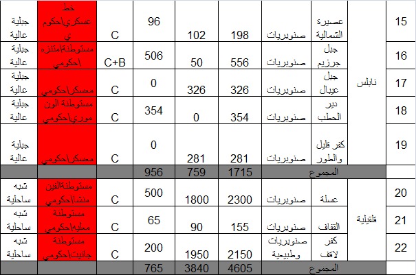 ويشير إلى أن المساحة الكلية للغابات التي أقيمت عليها المستوطنات ومحيطها 160 ألف دونم، أي 50% من المساحة الكلية للغابات الفلسطينية، موضحا أن معظمها يقع شرق محافظة طوباس والأغوار الشمالية، والتي أغلقت كمناطق تدريب عسكري ومعسكرات.