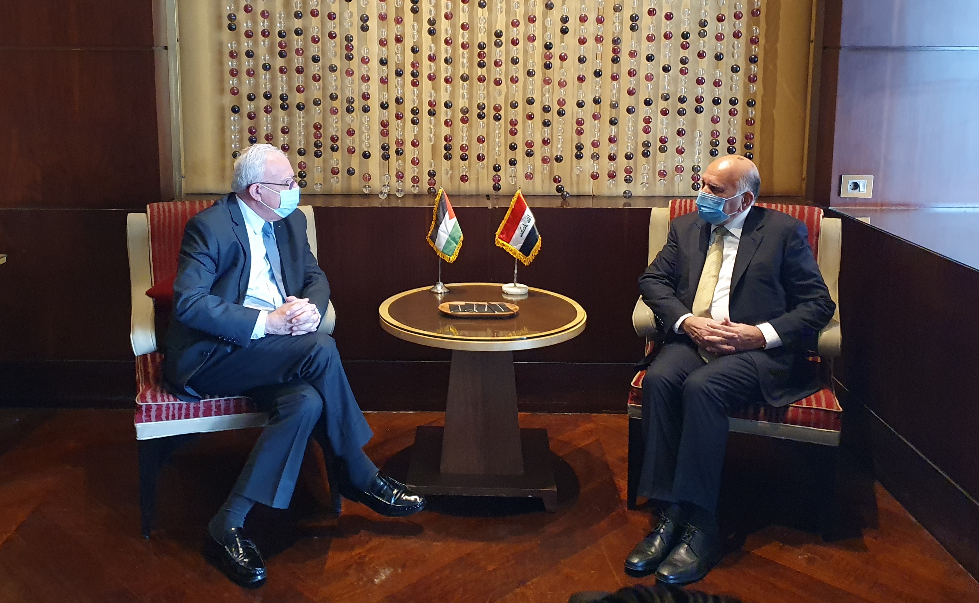 القاهرة 8-2-2021 وفا- بحث وزير الخارجية والمغتربين رياض المالكي، مع وزير خارجية العراق فؤاد حسين، آخر مستجدات الأوضاع في الأراضي الفلسطينية، وتعزيز التعاون المشترك، والجهود المبذولة للتحضير لإجراء الانتخابات الفلسطينية العامة.